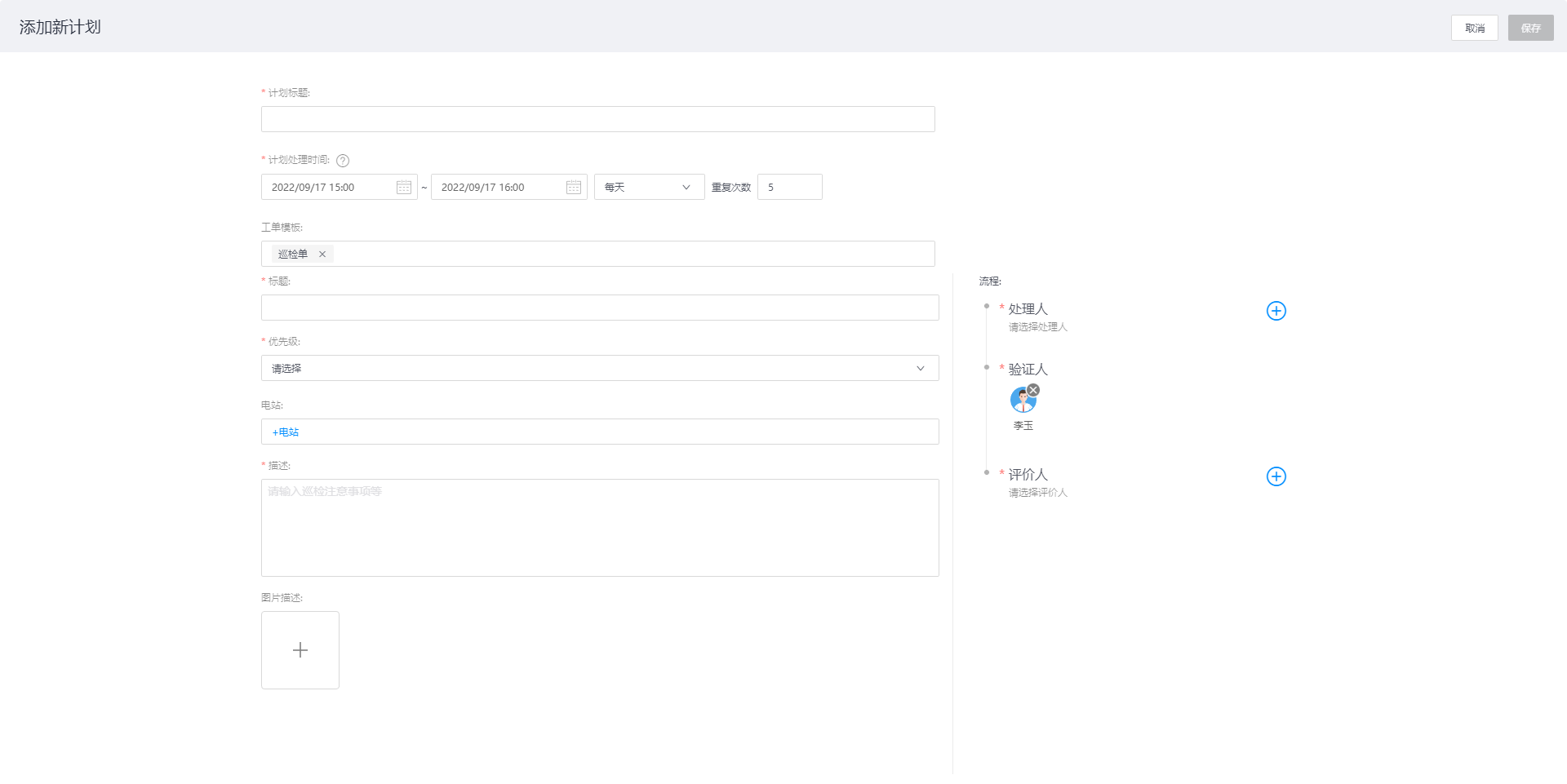 最重要的是,需要选择工单模板,然后在完成工单模板的选择后,需要和工单一样,输入工单标题、优先级、电站、描述、处理人、验证人和评价人。