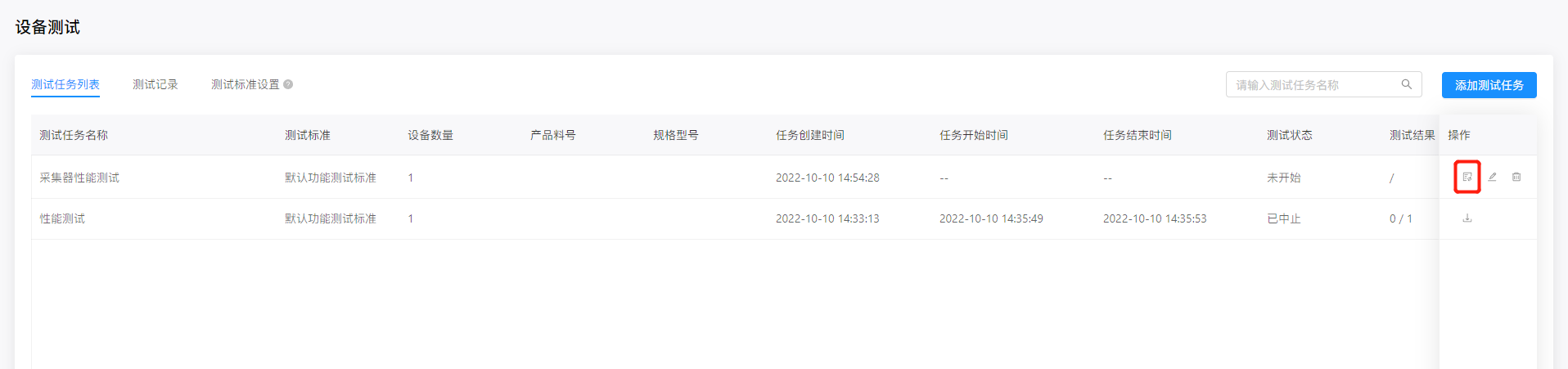 第三步:生成设备测试任务数据,选择点击【测试】按钮,开始测试