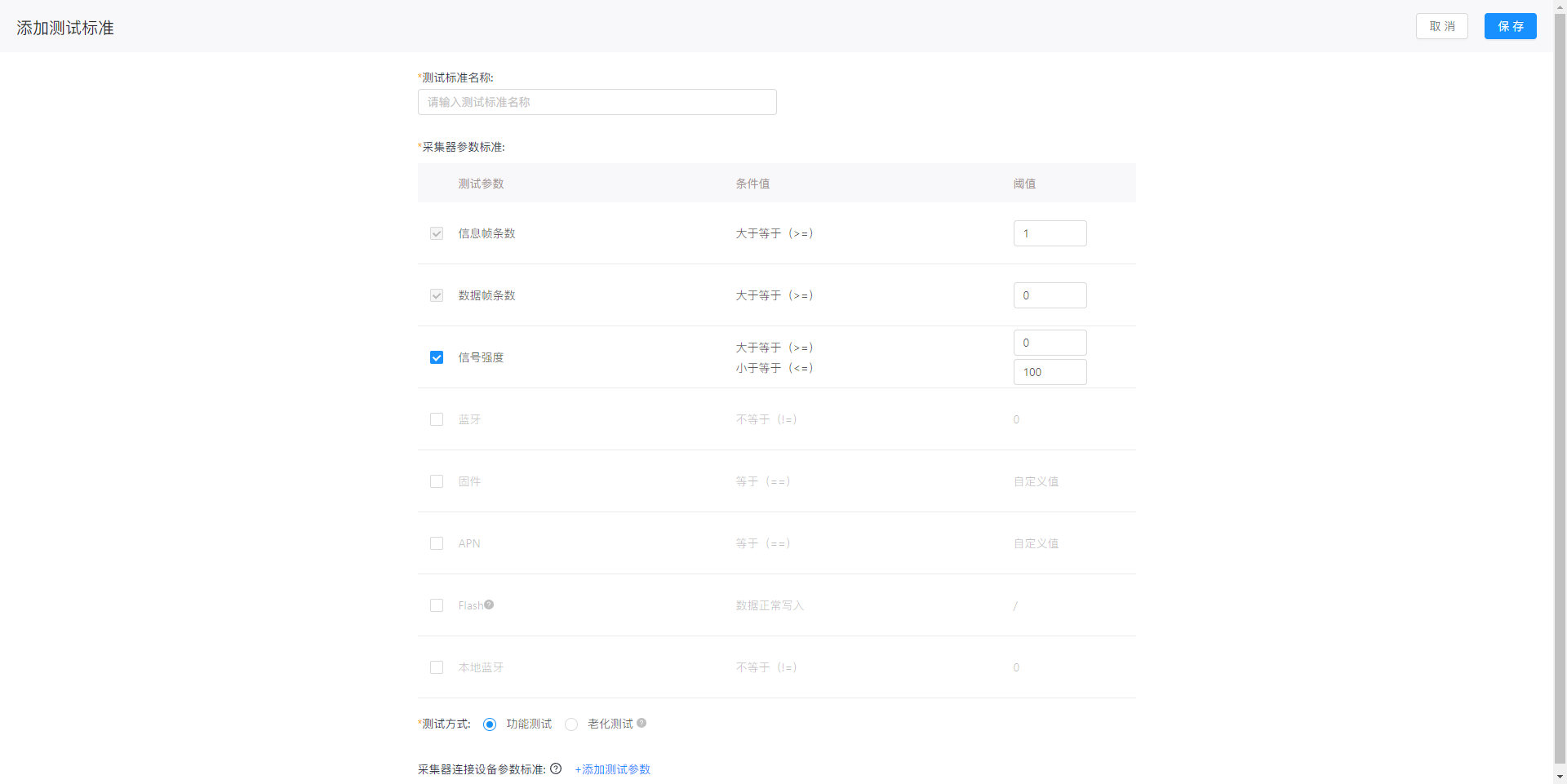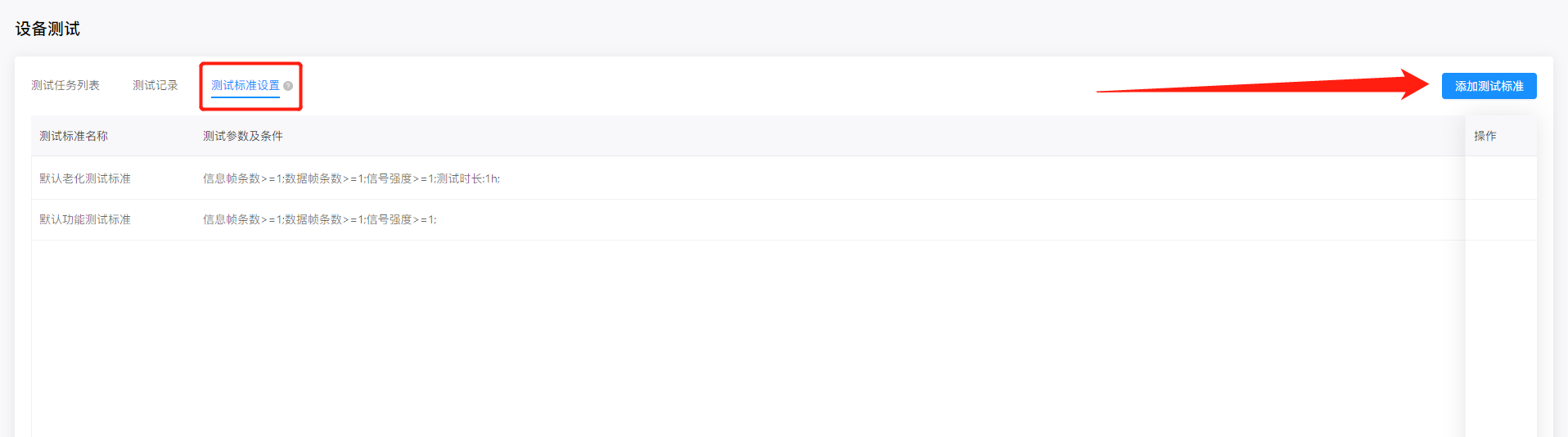在“测试标准设置”界面中,您可对设备测试任务的测试标准进行查看及添加,从而满足不同设备测试场景中的应用,如图所示: