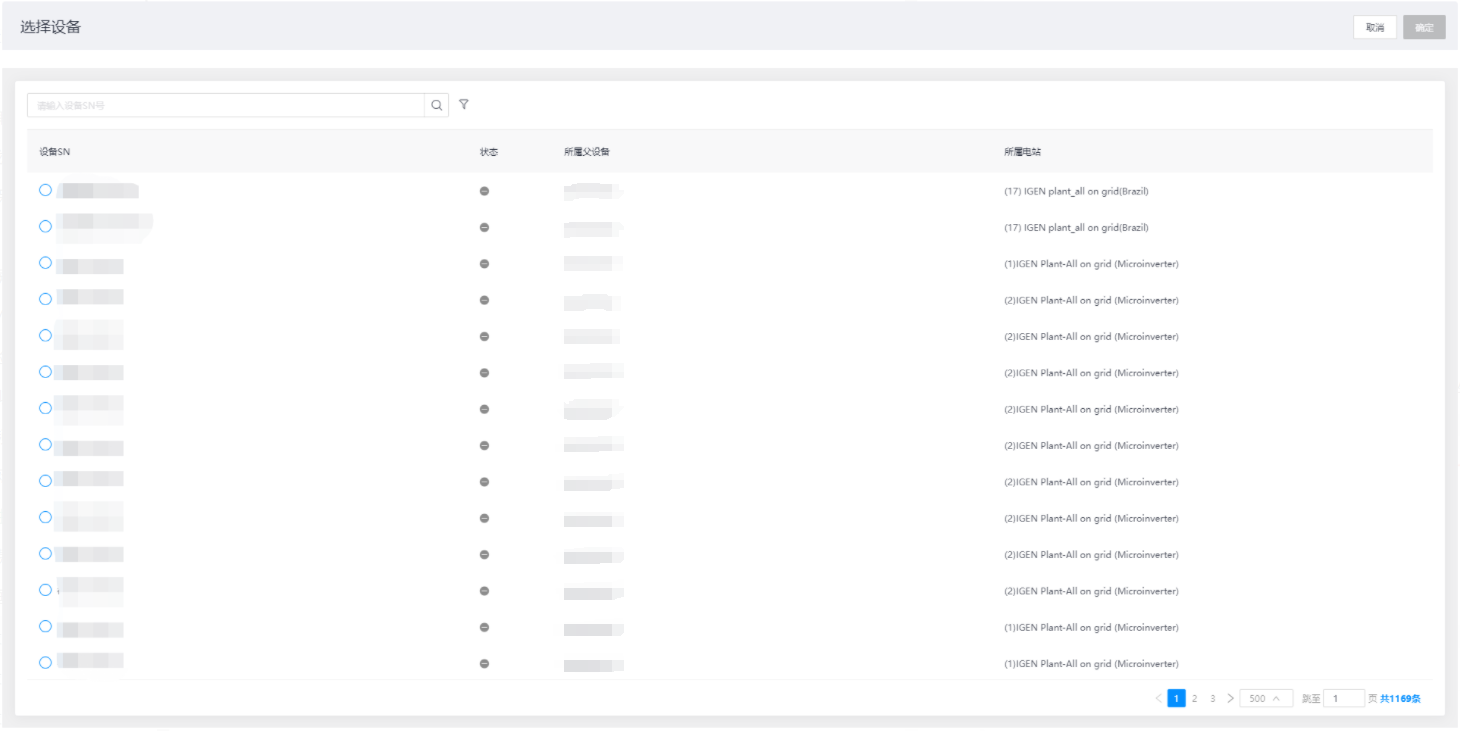 点击【选择设备】按钮,进入选择设备页面