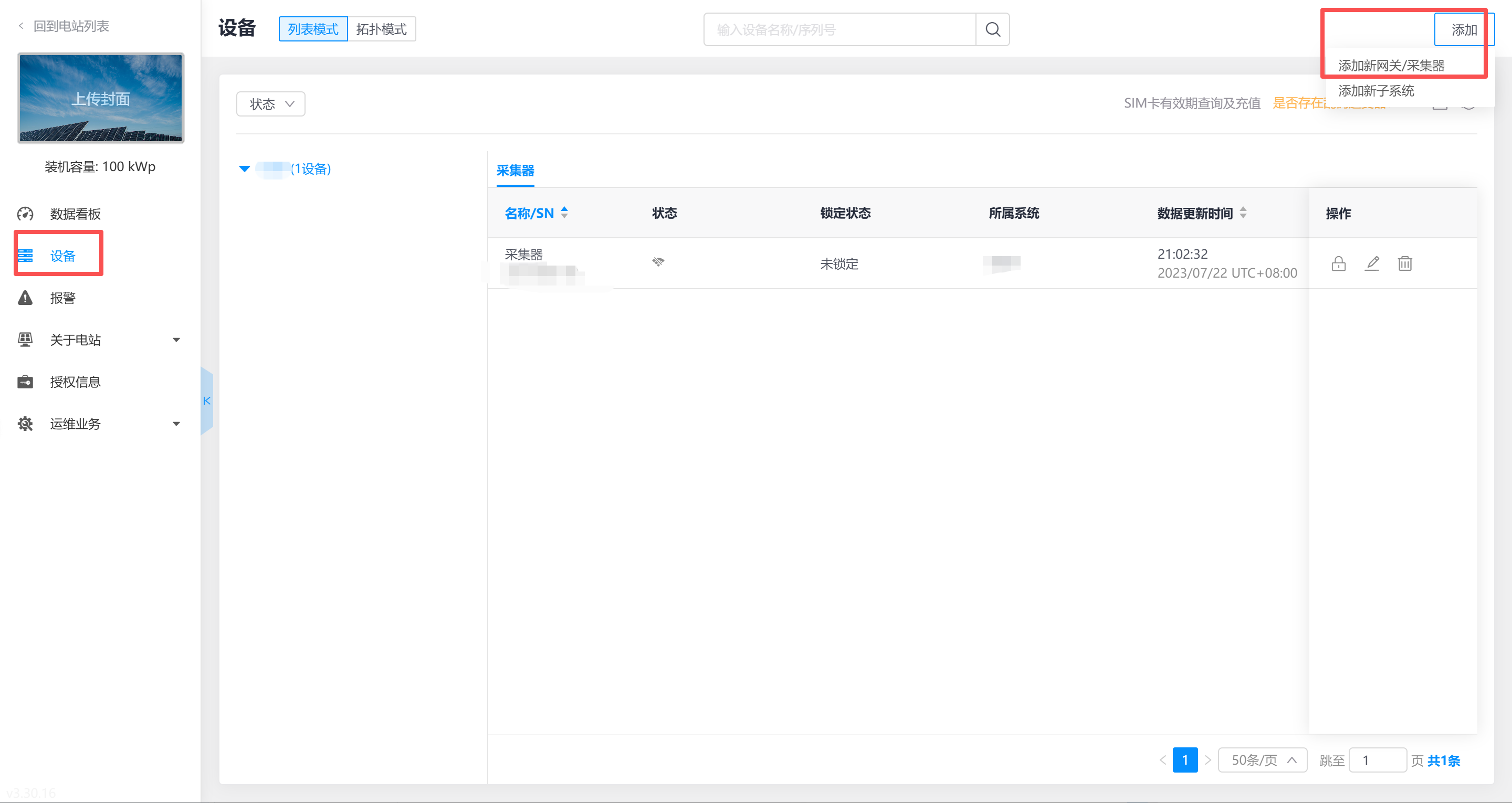 如果电站不变,只是更换了采集器,请在电站列表下添加时选择替换原有采集器,或删除采集器,重新添加新的采集器