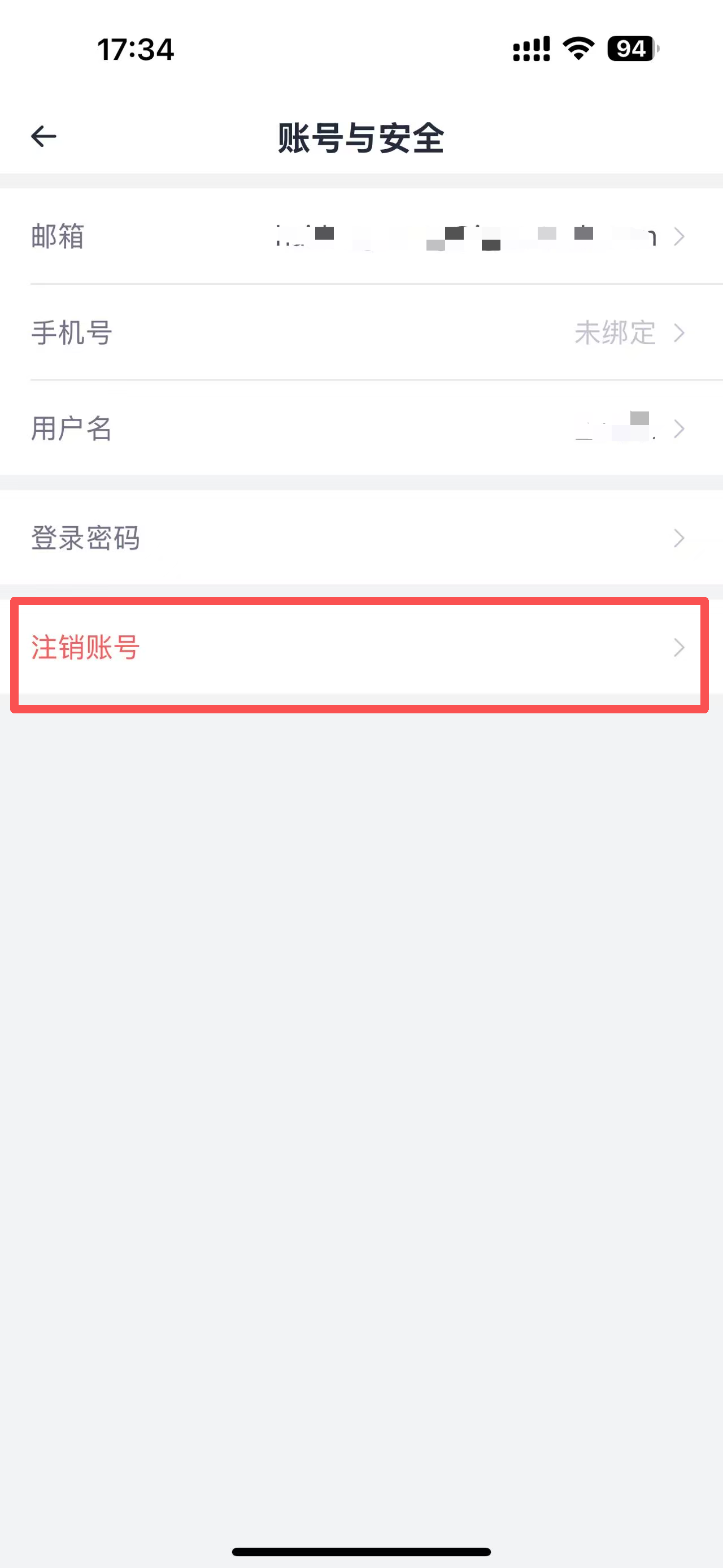 点击右上角头像,进入个人设置页面,在该页面选择注销账号进行操作