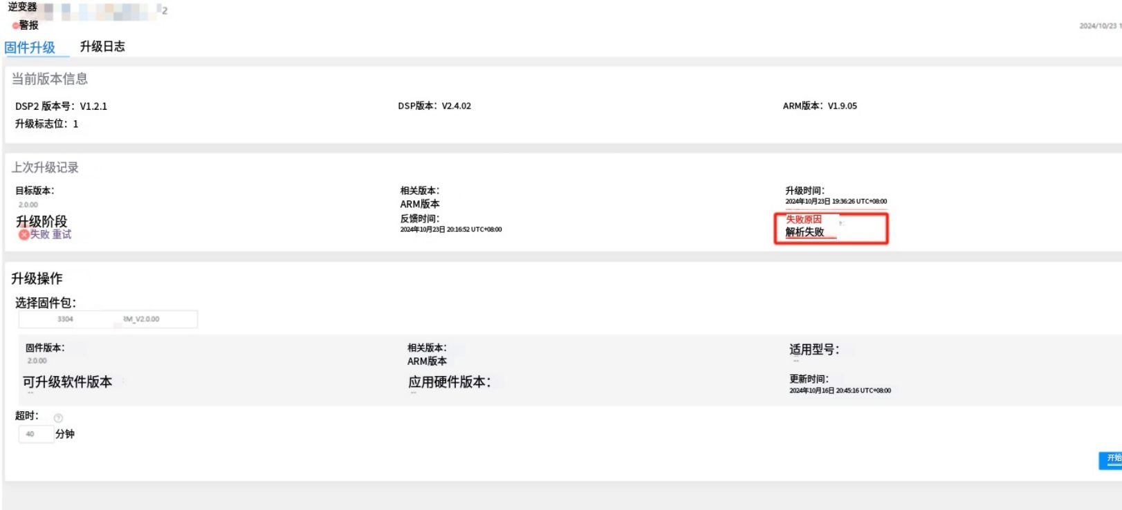 场景二:逆变器升级失败,报错:指令发送失败