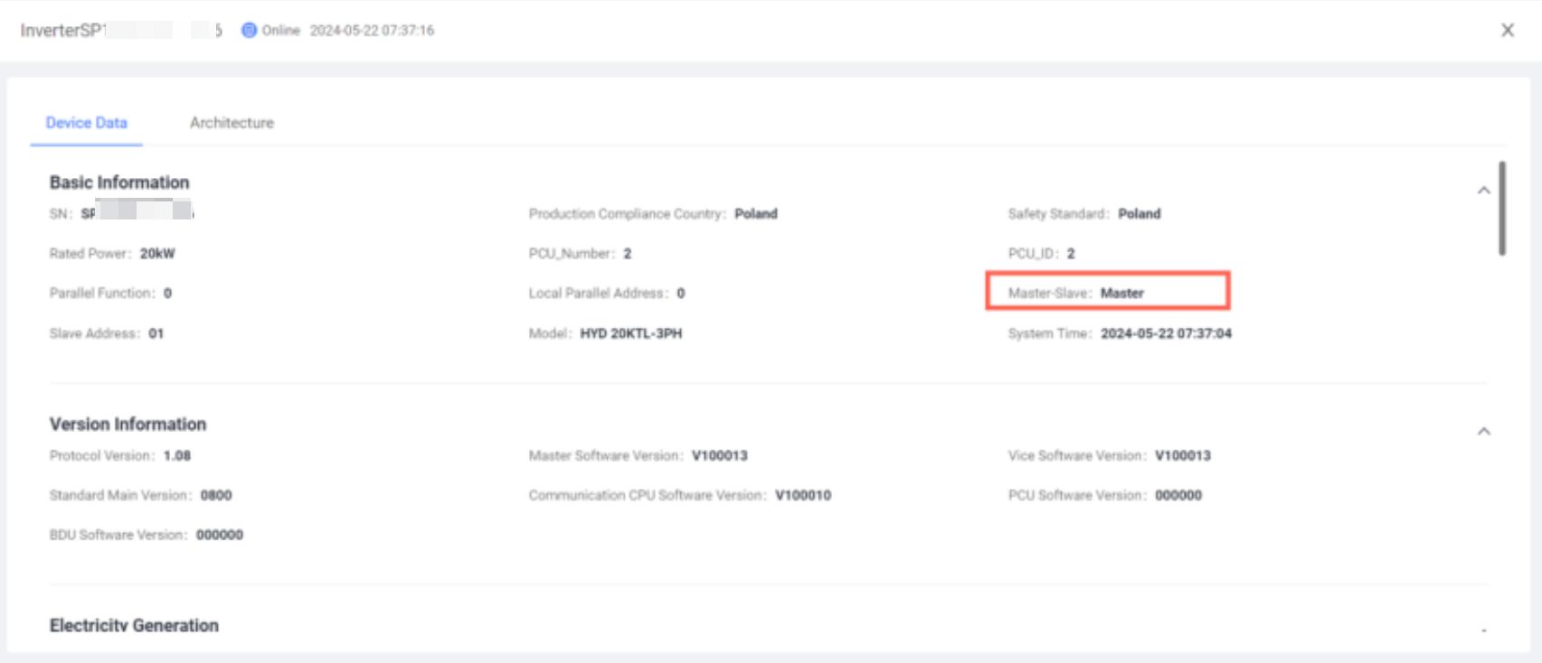 原因:这是由于电站下的两个逆变器都被设置为了主机,导致平台无法计算取值。需要联系逆变器厂家将逆变器设置为主从模式。