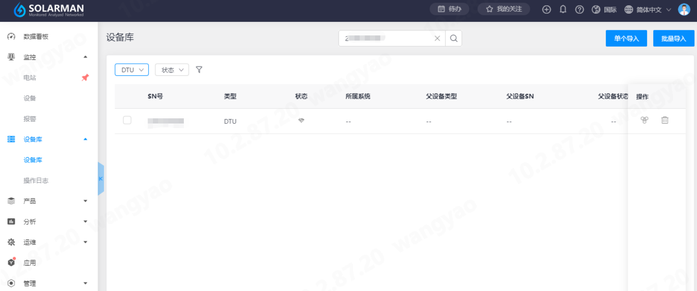 这种情况是因为采集器以其他类型提前入库过设备库,请在类型里选择DTU并搜索该SN,搜索到后删除该设备,重新以采集器的类型添加即可入库。