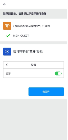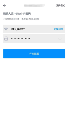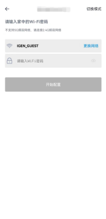 请确保手机已经打开GPS并连接家中的Wi-Fi网络和蓝牙,与页面上显示的网络一致,并输入该网络的连接密码。完成输入并确认信息无误后,点击【开始配置】按钮。